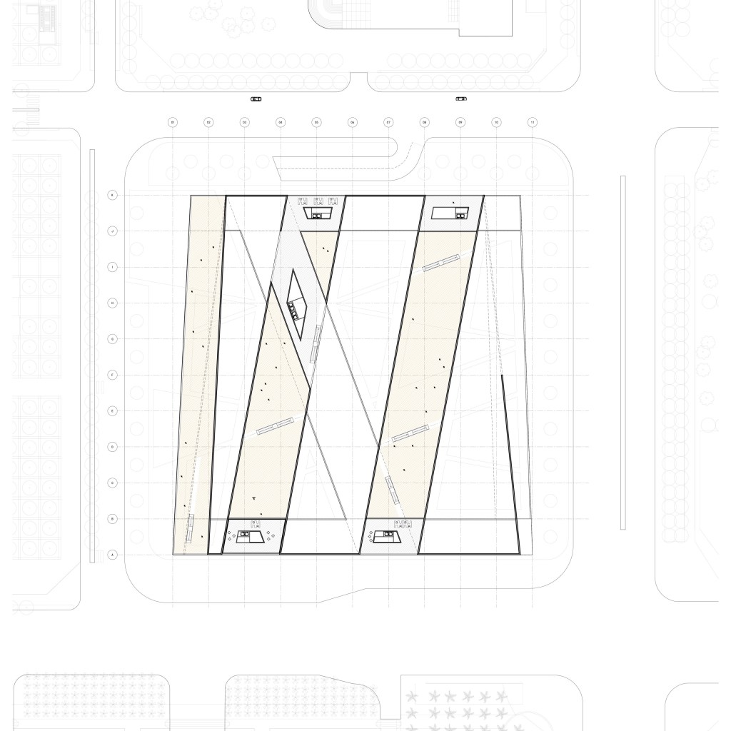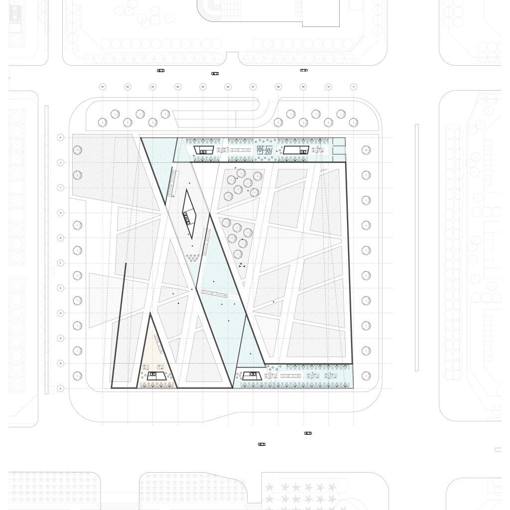 This proposal follows the guidelines of the the Shenzhen Architectural Competition for a new Museum of Contemporary Art, Planning & Exhibition, and the design focuses on visitors’ procession through a series of floating galleries intertwined within undulating, landscaped, public open-spaces.