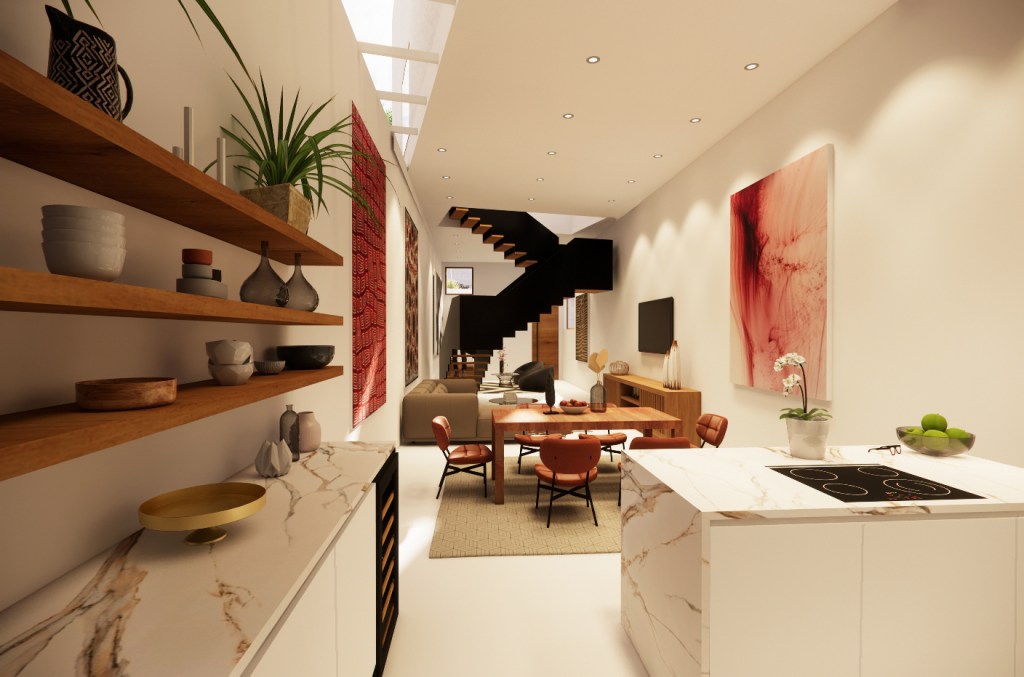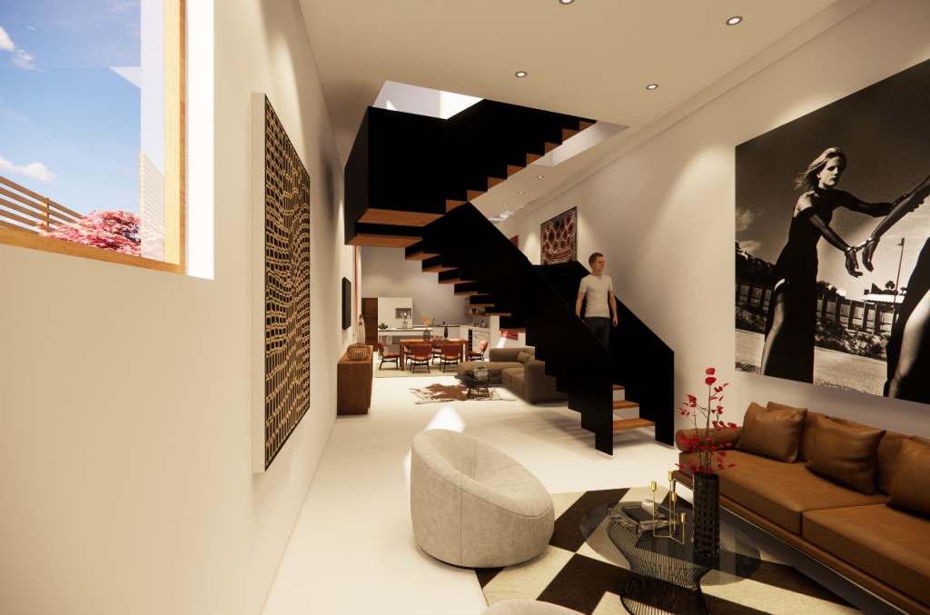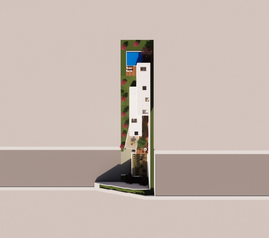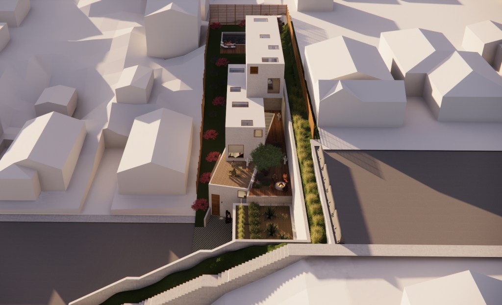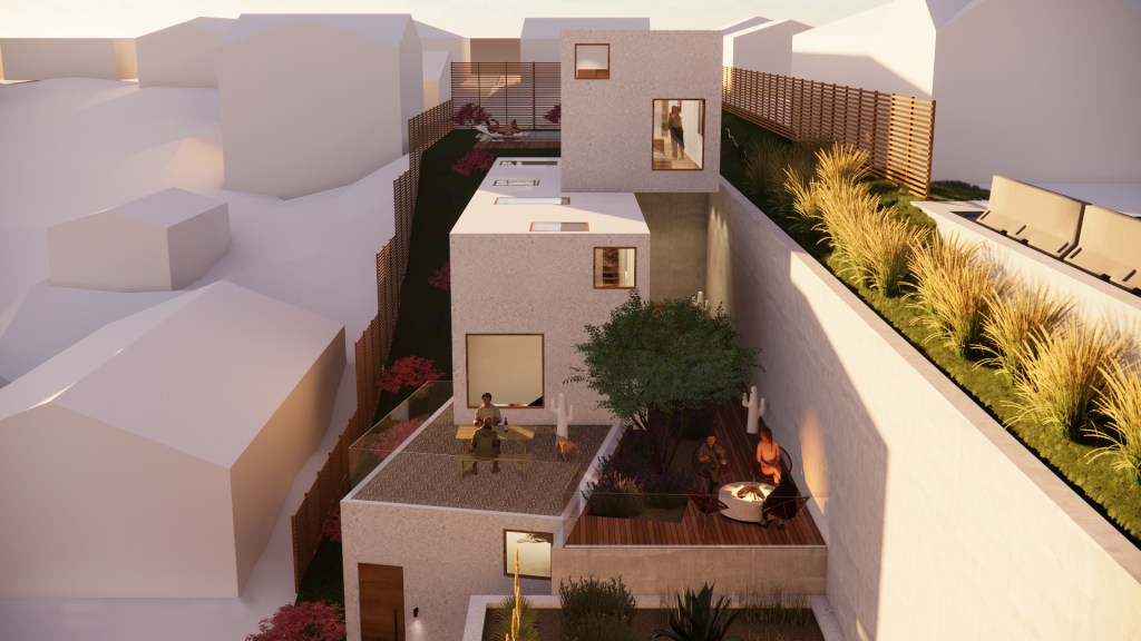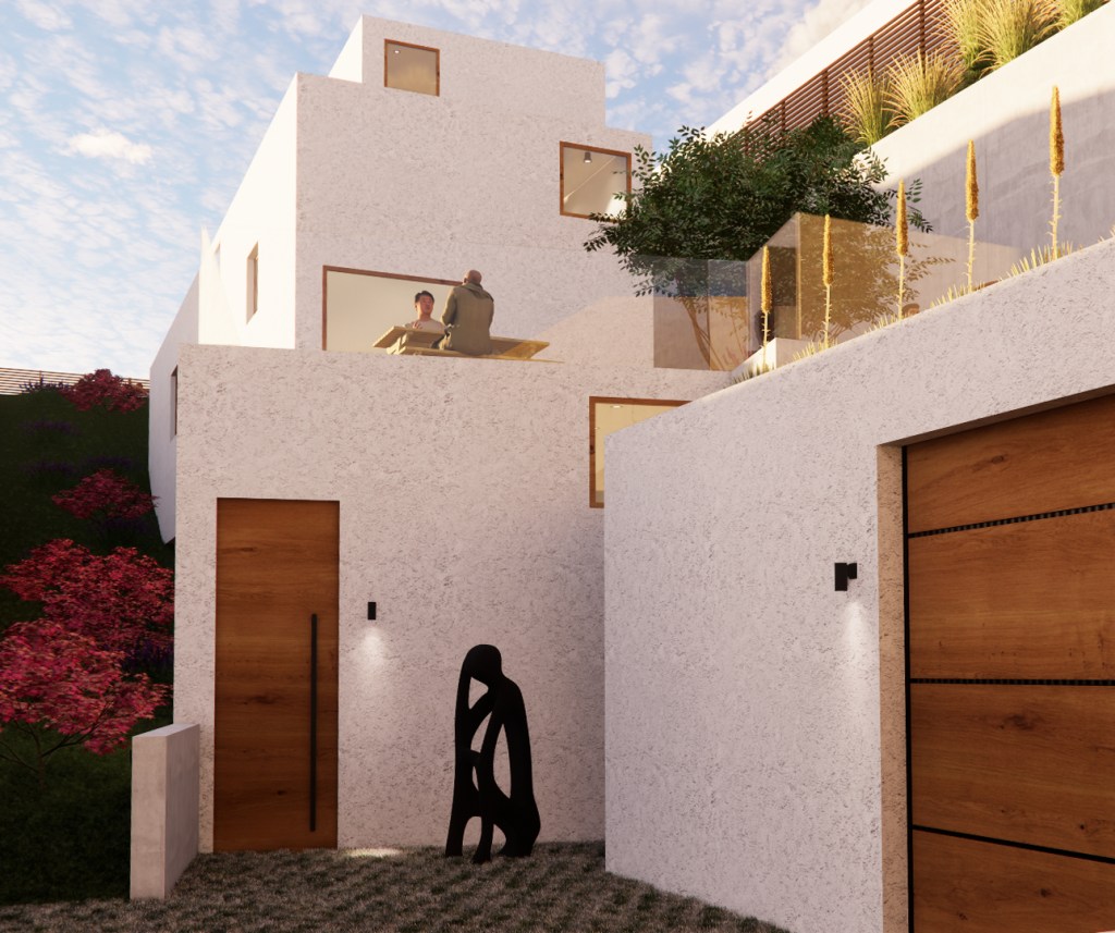 Located on a unique vacant lot in a northeast neighborhood of Los Angeles which stratals and bisects a road, the Road House, is a single-family residence which looks to make use of its complex site condition. Balancing on the graded hillside between a retaining wall and its slope, stepped volumes climb up the the plot while nestling in with new landscaped terraces. This creates multiple views of the neighboring Mt. Washington hills, and allows the homeowner to access various elevations of the property. Windows and skylights dance across the facade and roofs to bring in light to the interior across various times of day while also providing necessary privacy. Their scattered locations provide the ability to harness natural cross-ventilation when opened and closed, and enhance the connection to the outside.